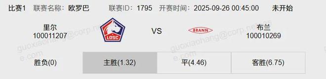 两队没有历史交战记录,目前市场给到里尔1.25的强势支持,看主胜无疑。
