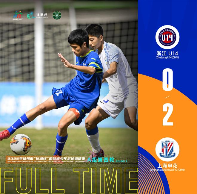 北京时间10月24日上午,2025“钱潮杯”国际青少年足球邀请赛A组上演一场巅峰对决,势不可挡的上海申花U14队对阵同样状态不俗的浙江U14队。最终,经过一场鏖战过后,上海申花2:0轻取浙江队。